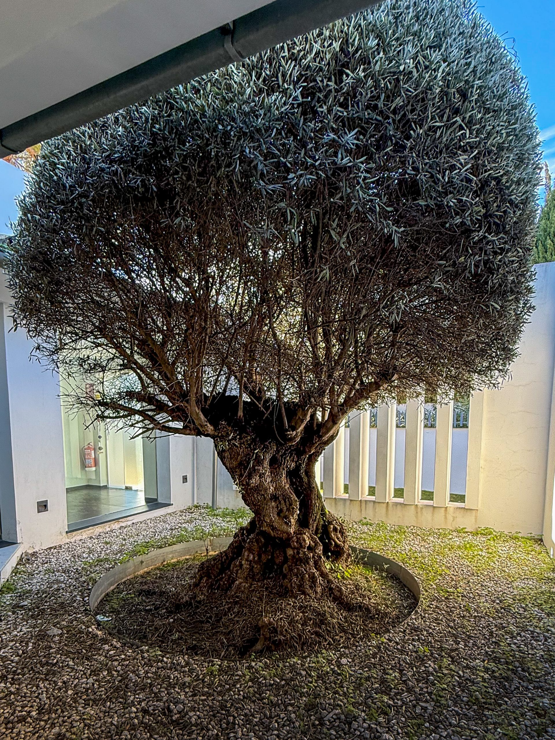 When entering this remarkable villa the modern architecture harmonious floats together with the 400-year-old Olive tree left in peace outside the glass construction. You instantly feel at ease while exploring the rest of this beautiful house. Straight ahead the open plan living area presents itself, where you find a fully equipped kitchen with dining area fitting six and a separate dining area fitting eight people. From the kitchen area, there is direct access to the laundry room with washing machine and tumble dryer. The living room and recreational area is one level down, with beautiful natural light coming in from the full-size windows facing the garden and pool area, creating a smooth transition between indoor and out life.