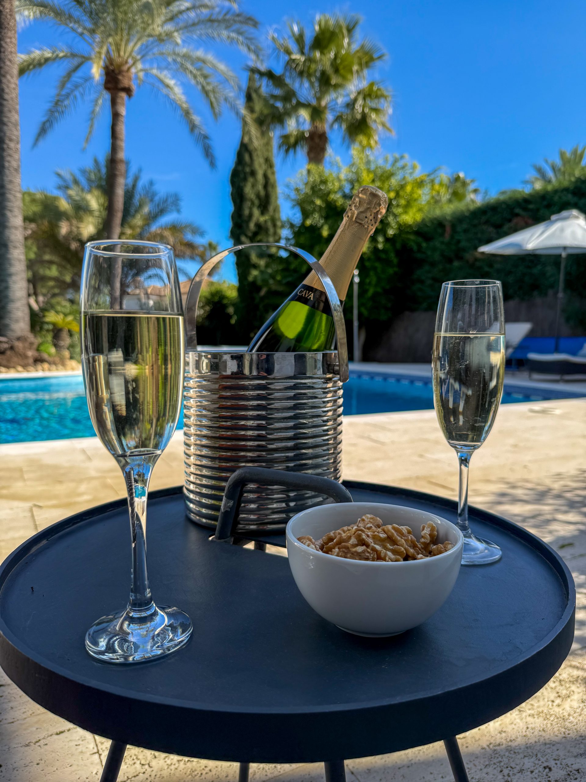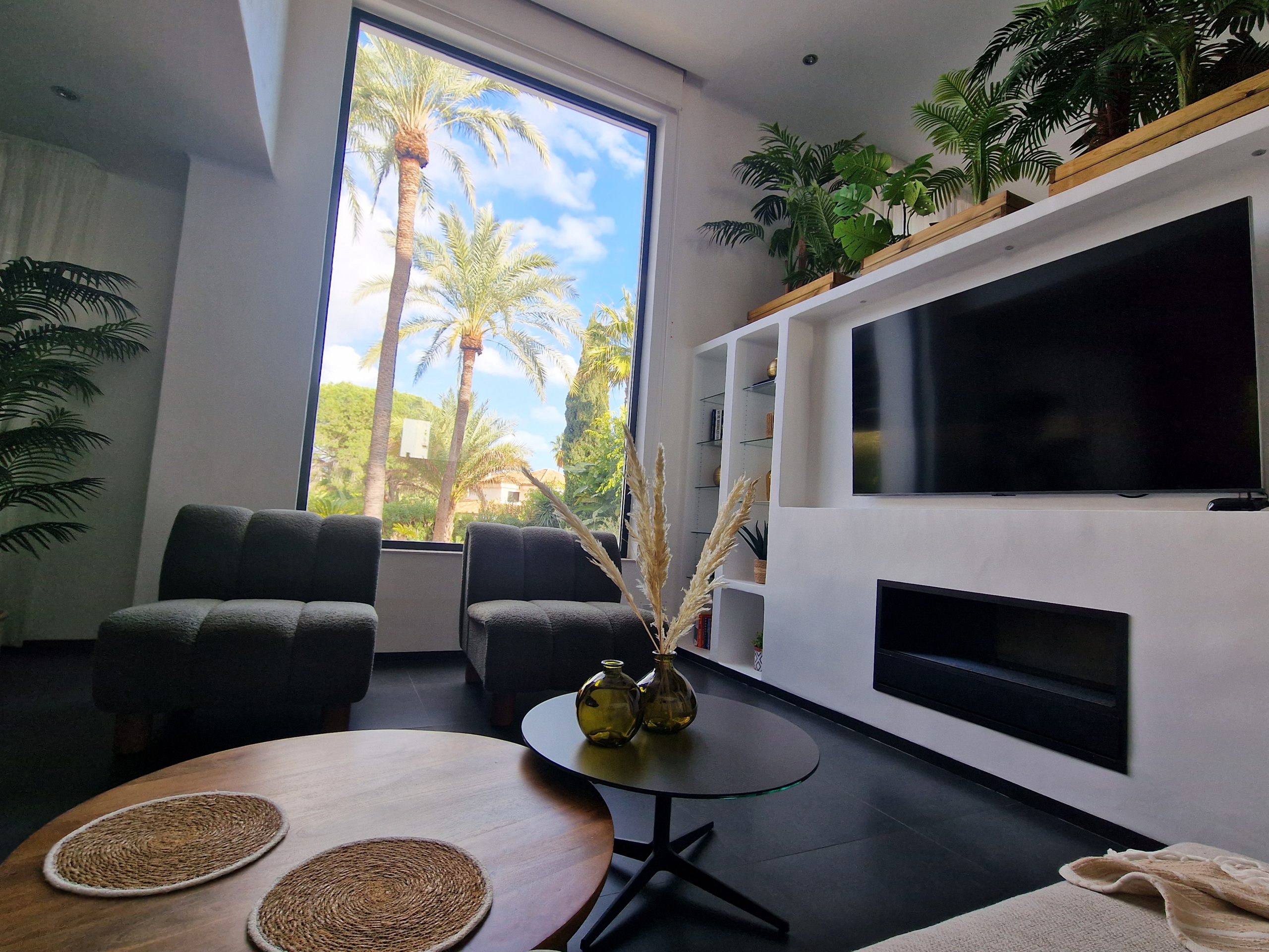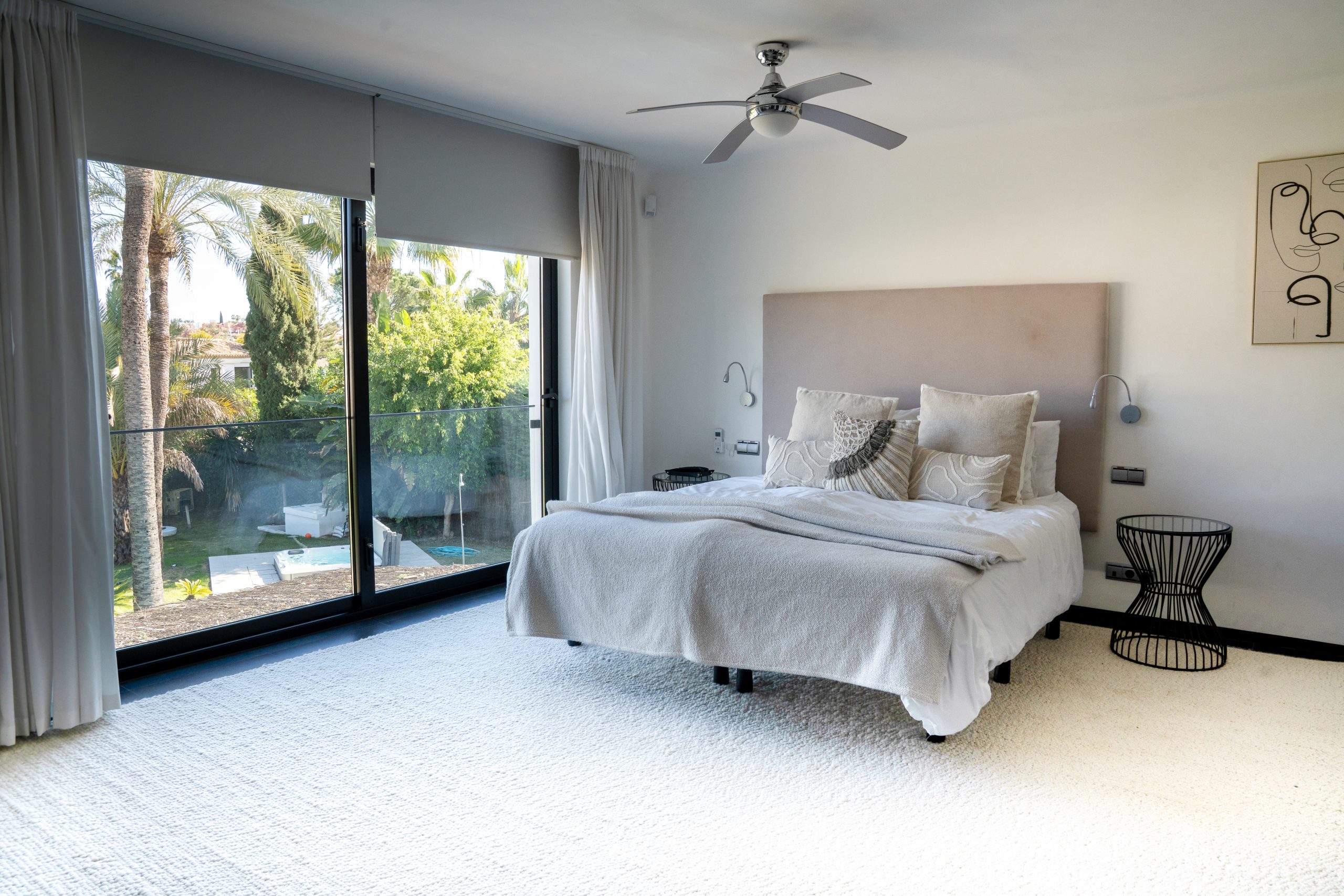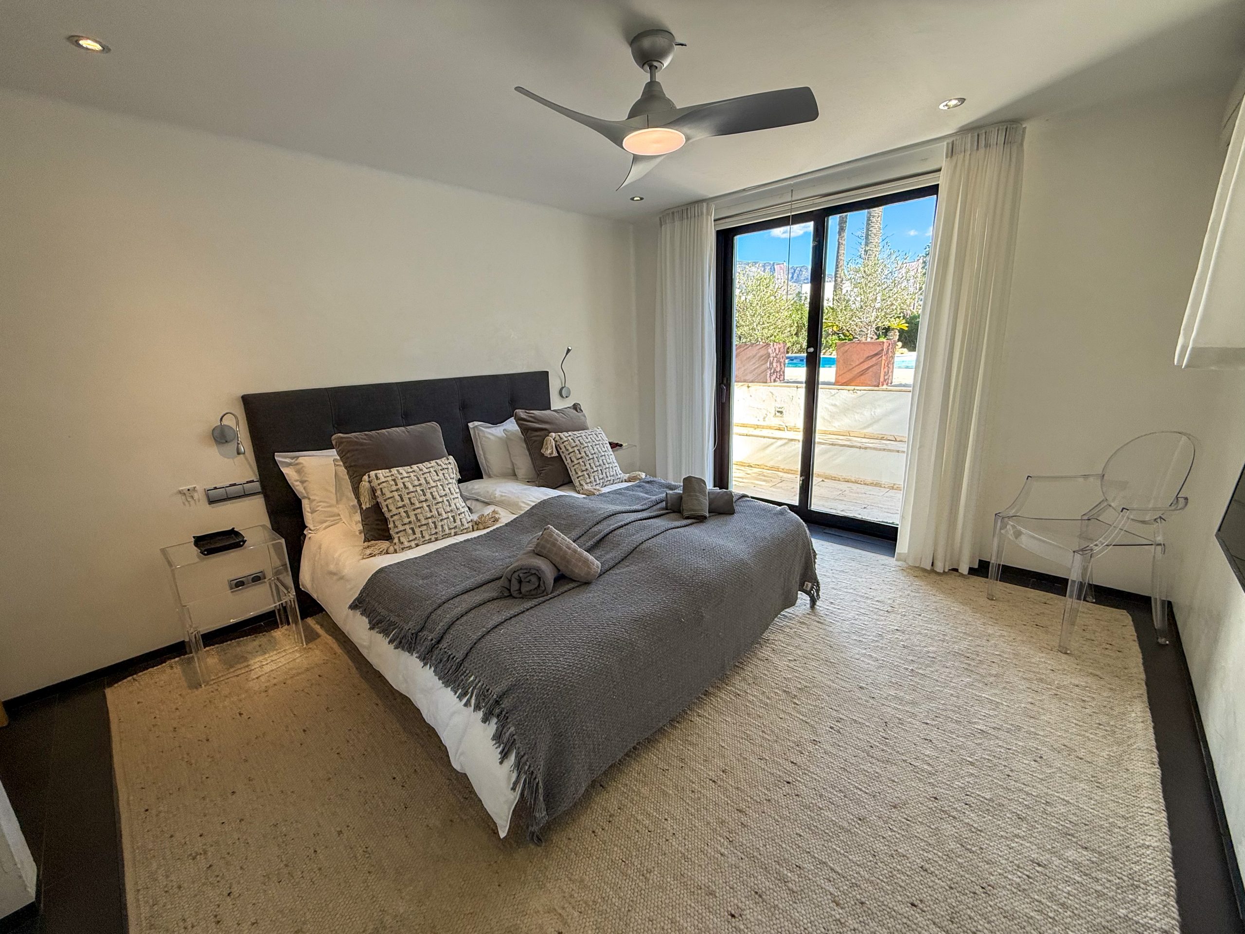 Outside you have a spacious garden with palm trees, a large heated swimming pool and jacuzzi. The barbecue area is ideal for entertaining and dining under the stars, while the partly covered terrace and lounge seating offer a cosy feel. With total privacy and views towards the mountains, it is genuinely a peaceful haven of paradise.